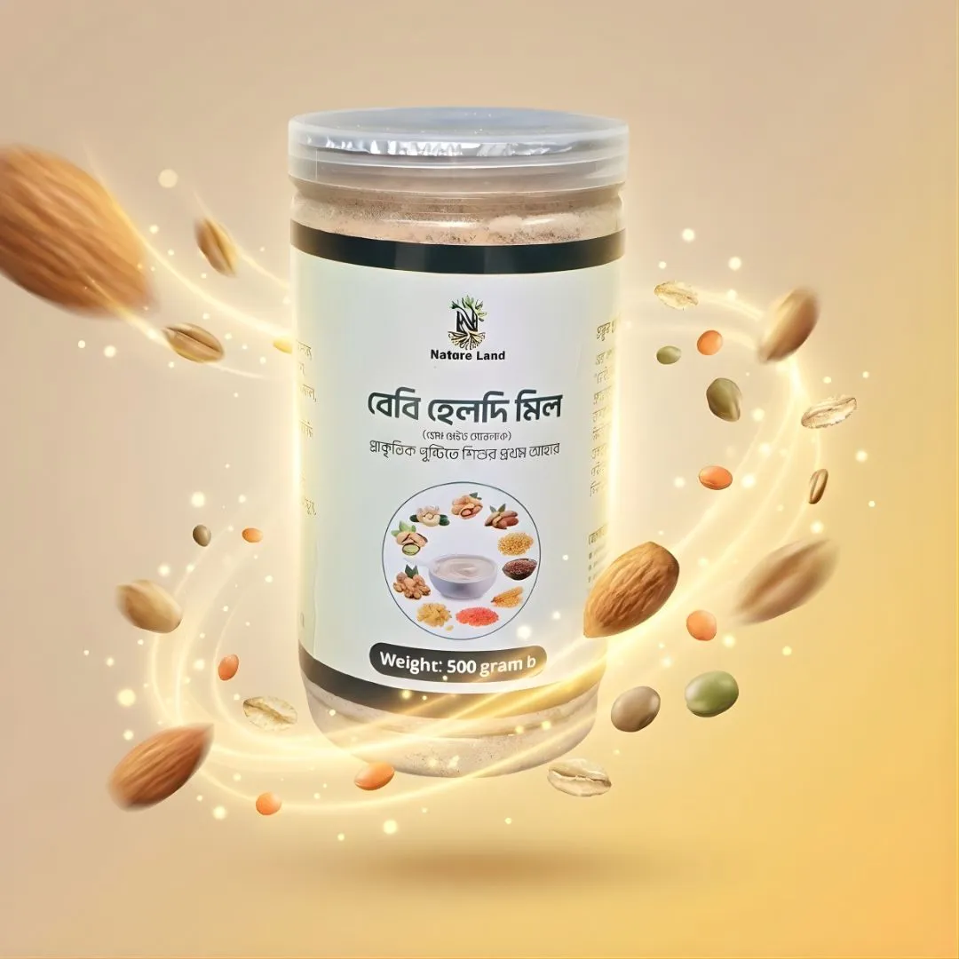 NatureLand Healthy Meal (Homemade Cerelac) তৈরি করা হয়েছে শিশুর স্বাভাবিক বৃদ্ধি, শক্তিশালী মস্তিষ্ক ও সুস্থ ভবিষ্যতের কথা মাথায় রেখে। এটি কোনো ফ্যাক্টরির প্রসেসড খাবার নয়—সম্পূর্ণ প্রকৃতিক উপাদান ও যত্নসহকারে প্রস্তুত করা একটি হেলদি মিল।